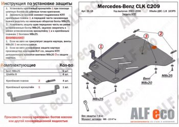 Защита КПП (V-1.8) ALFECO (сталь 2 мм) Mercedes-Benz CLK class W209 (2003-2010)