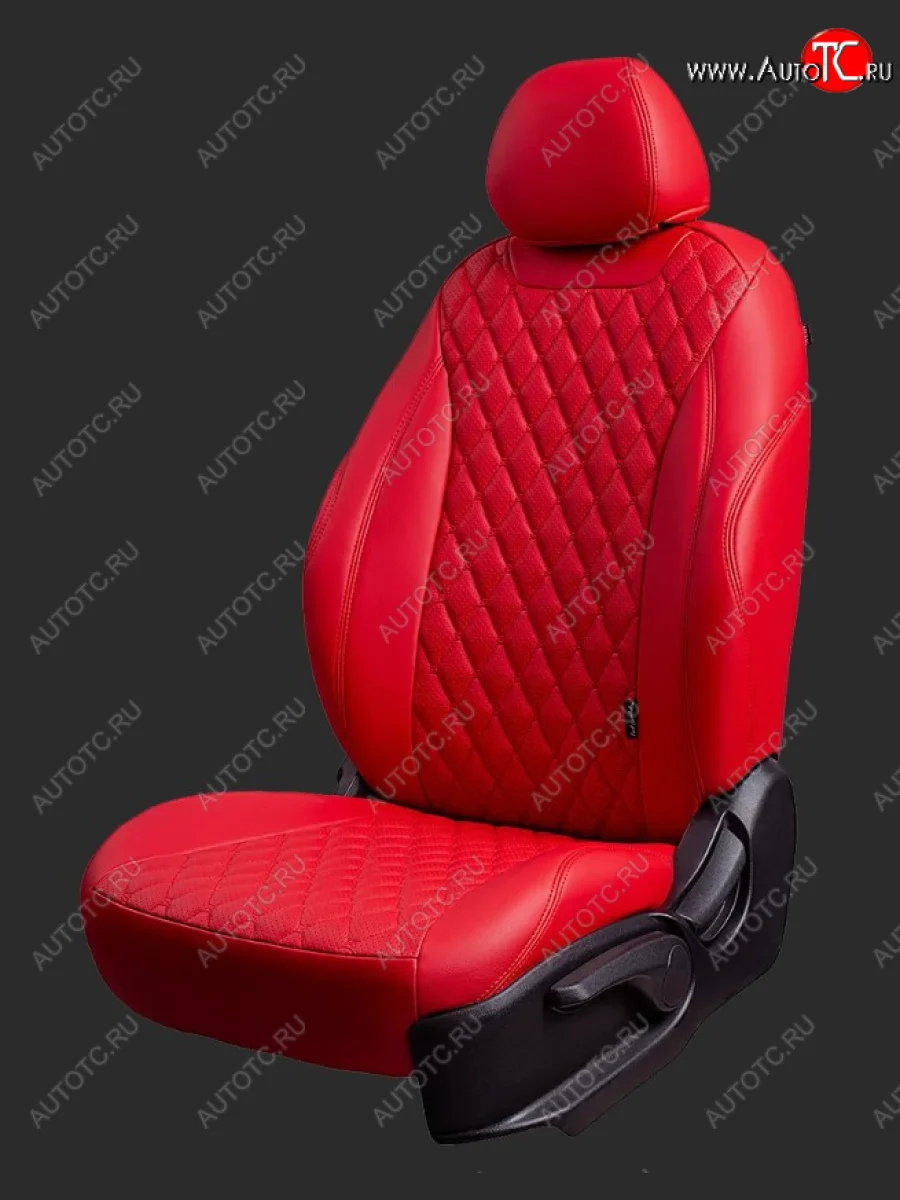 Чехлы для сидений Lord Autofashion Байрон (экокожа, спинка 60/40, 3 г-образных подголовника) Hyundai Solaris (2017-2022) HCR (Красный, вставка красная, строчка красная) в Воронеже Воронежской области