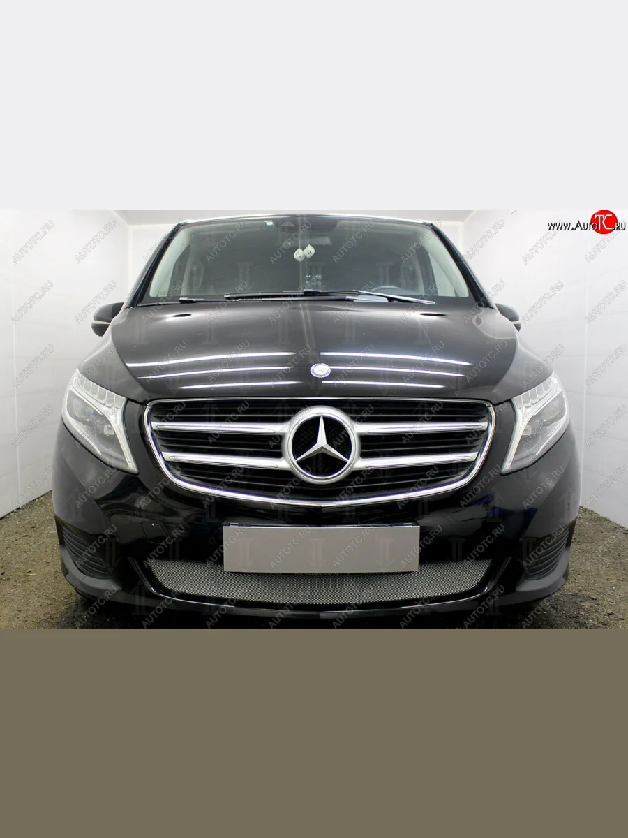 Защитная сетка в бампер (низ, ячейка 3х7 мм) Alfeco Стандарт Mercedes-Benz Vito (2015-2020) W447 (Хром) в Воронеже Воронежской области