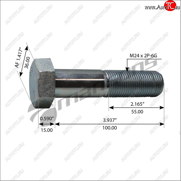 | Наименование | Болт SAF амортизатора (M24x2х100мм) MANSONS MANSONS 600.181 в Воронеже Воронежской области |