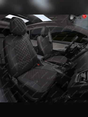 | Наименование | Чехлы сидений (экокожа, 40/60) Автопилот Ромб (черный/красная строчка) в Воронеже Воронежской области |