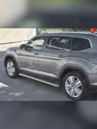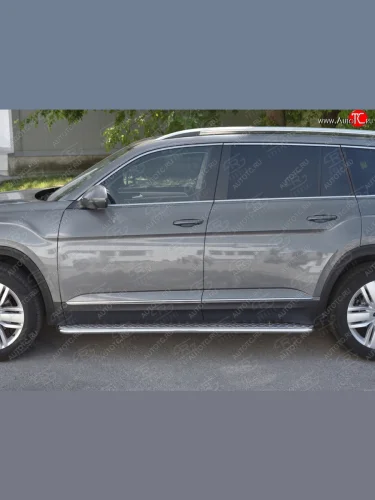 Пороги труба d42 с листом Russtal Volkswagen Teramont 1 CA1 дорестайлинг (2016-2020) (Лист алюм, проф.нерж) в Воронеже Воронежской области