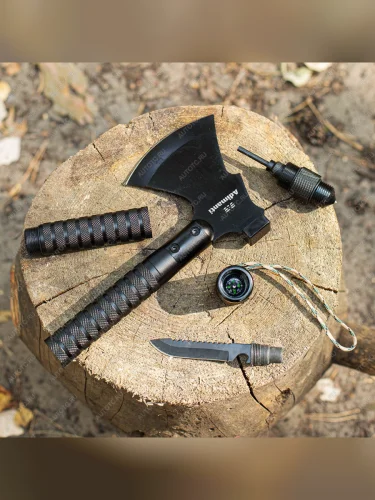 Топор Adimanti AXE-003 относится к походному типу инструментов, который имеет расширенный функционал за счет ряда мелких дополнений. Основное предназначение модели – использование в экстремальных условиях для выживания на природе, хотя изделие также подойдет для пикника или дачного отдыха, чтобы нарубить веток, разжечь костер или разделать рыбу.