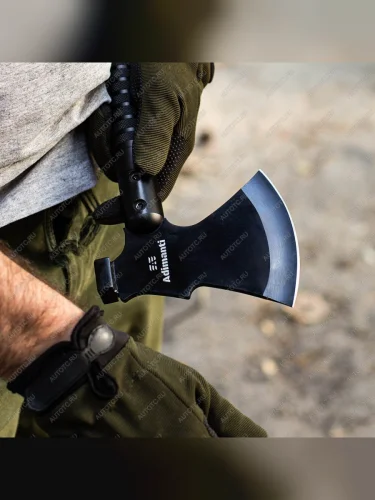 Модель AXE-003 от бренда Adimanti – многофункциональный инструмент, чья конструкция включает острый топор и ряд мелких дополнений. Изделие предназначено для использования в полевых условиях и обладает компактными размерами, что позволяет носить инструмент в туристическом рюкзаке или хранить в багажнике автомобиля.
