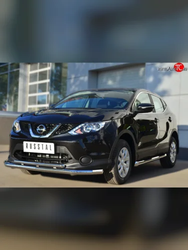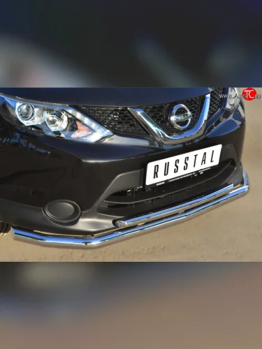 Защита переднего бампера (2 трубыØ63 и 42 мм, нержавейка) SLITKOFF Nissan Qashqai 2 J11 дорестайлинг (2013-2019) в Воронеже Воронежской области
