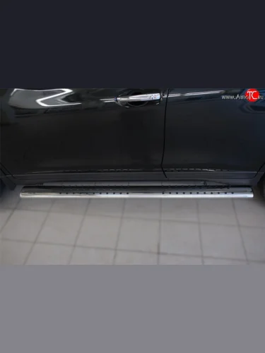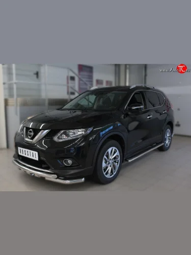Защита порогов с круглыми вставками для ног из овальной трубы диаметром 120x60 мм Russtal Nissan X-trail 3 T32 рестайлинг (2017-2022) в Воронеже Воронежской области