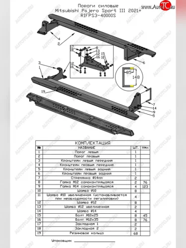 Защита порогов с подножкой РИФ Mitsubishi Pajero Sport (2019-2022) QF в Воронеже Воронежской области
