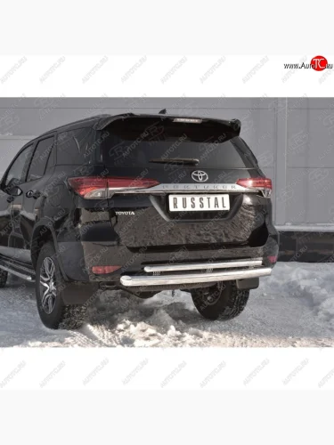 Защита заднего бампера (2 трубы Ø76х42 мм, нержавейка) SLITKOFF Toyota Fortuner AN160 дорестайлинг (2015-2020) в Воронеже Воронежской области