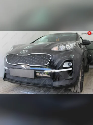 Защитная сетка в бампер (низ, ячейка 3х7 мм) Alfeco Стандарт KIA Sportage (2018-2022) 4 QL (Чёрная) в Воронеже Воронежской области
