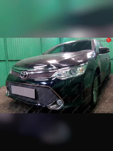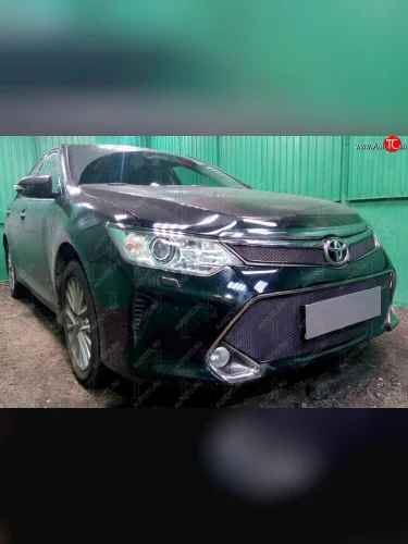 Защитная сетка в бампер (верх, 2 части, ячейка 4х10 мм) Стрелка11 Премиум Toyota Camry XV55 1-ый рестайлинг (2014-2017) (Чёрная) в Воронеже Воронежской области