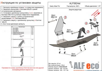 Защита картера двигателя и КПП (V-2,0Т, большая) ALFECO (Сталь 2 мм) Chery Tiggo 8 PRO MAX (2022-2025) e plus