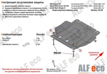 Защита картера двигателя и КПП (V-2,2) ALFECO (Алюминий 4 мм) Ford Transit ( 4) (2014-2025) цельнометаллический фургон, рестайлинг